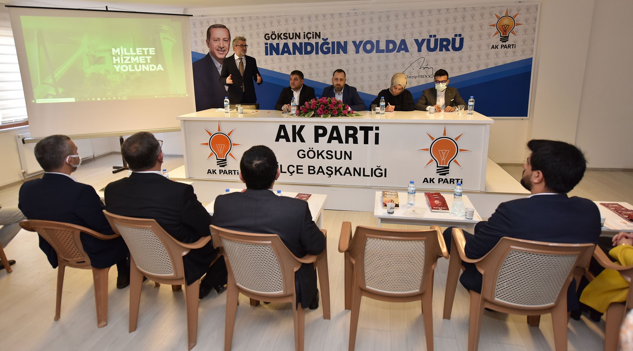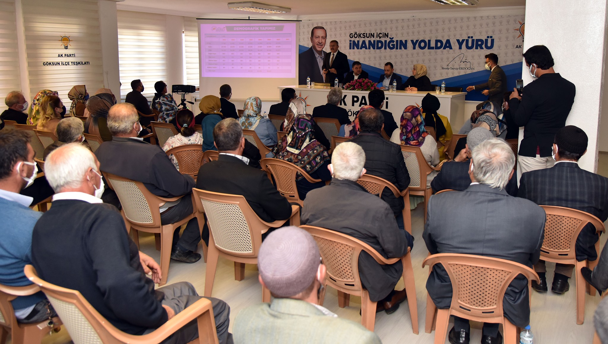 Göksun Belediye Başkanı Hüseyin Coşkun  Aydın, toplantıda belediye tarafından 8 yıl içinde yapılan yatırımlar ile eğitim, sosyal ve kültürel faaliyetleri anlatan bir sunum yaptı.