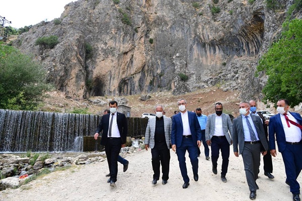 Kahramanmaraş Büyükşehir Belediye Başkanı Hayrettin Güngör, kent turizmine yeni bir soluk getirecek Aksu Gözü Turizm Tesisi projesiyle ilgili bilgi verdi. Çağlayancerit ilçe ziyaret programını Aksu Nehri’nin kaynağıyla sonlandıran Başkan Güngör; “Bu alan şehrimizin ve ilçemizin en önemli doğal mirası arasında yer alıyor. Aksu Gözü’nün tabiat güzelliğini muhafaza ederek turizme kazandıracağız” dedi. Bölgeye ulaşım sağlayacak alternatif bir güzergâh üzerinde çalıştıklarına da dikkat çeken Başkan Güngör, “Bakanlığımızla istişare halindeyiz. İlçemizi daha ulaşılabilir hale getirmek için yeni bir arteri inşallah kazandırmış olacağız” diye konuştu.