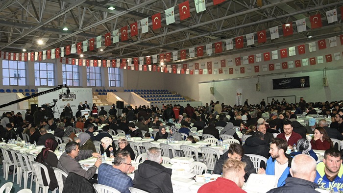 Kahramanmaraş Büyükşehir Belediyesinin Ramazan ayının manevi iklimini ve paylaşma geleneğini şehrin dört bir yanına taşımak amacıyla hayata geçirdiği “İlçemde İftar Var” programı, üçüncü durağı olan Göksun’da yoğun katılımla gerçekleştirildi. İlçede düzenlenen iftar buluşması, birlik ve beraberliğin en güçlü şekilde hissedildiği anlamlı bir akşama sahne oldu. Salonun tamamen dolduğu programda 7’den 70’e her yaştan vatandaş aynı sofrada buluştu. Ramazan’ın bereketini ve kardeşlik ruhunu birlikte yaşayan Göksunlular, paylaşmanın ve dayanışmanın en güzel örneklerini sergiledi. İlçede adeta gönül sofraları kuruldu, dualar aynı anda semaya yükseldi.