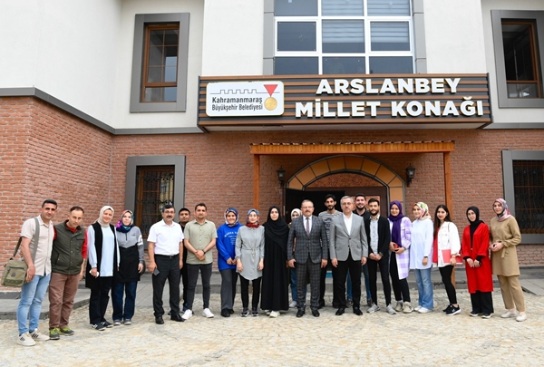 Büyükşehir Belediye Başkanı Hayrettin Güngör, Göksun’da Büyükşehir Belediyesi tarafından hayata geçirilen Arslanbey Millet Konağı’nı da ziyaret etti. Başkan Güngör, Millet Konağı’nda öğrenciler, kursiyerler ve eğitmenlerle bir araya gelerek bolca sohbet etti. İlçede esnaf ve vatandaşlarla da bir araya gelen Başkan Hayrettin Güngör, “İlçemizde hayata geçirdiğimiz Arslanbey Millet Konağı’nı ziyaret ettik. 7’den 70’e tüm hemşehrilerimizin istifade edebileceği çok güzel bir mekân oldu. Göksun’a ve hemşehrilerimize hayırlı olsun. Burada öğrencilerimizle de bir araya geldik. Hepsine eğitim hayatlarında başarılar diliyorum. İlçe ziyaretimizde esnaf ve vatandaşlarımızla da bir araya gelerek bolca muhabbet ettik. Gerçekten gittiğimiz her yerde büyük bir teveccühle karşılaşıyoruz. Güler yüzleri ve samimi muhabbetleri içimizi ısıttı. Hemşehrilerimizle her zaman biriz, birlikteyiz” dedi.