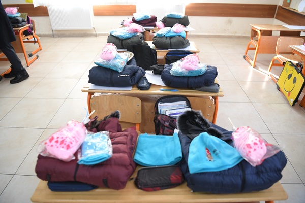 Konuşmaların ardından 300 öğrenciye bin parça mont, atkı, bere ve eldiven dağıtıldı.