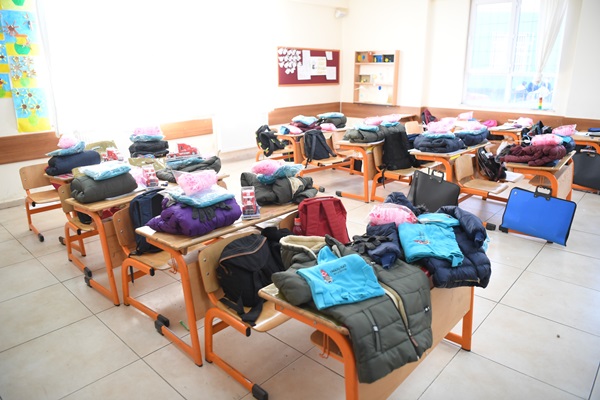 300 öğrenciye bin parça kışlık malzemenin dağıtıldığını programda Başkan Mahçiçek, öğrenci ve öğretmenlerle sohbet etti.