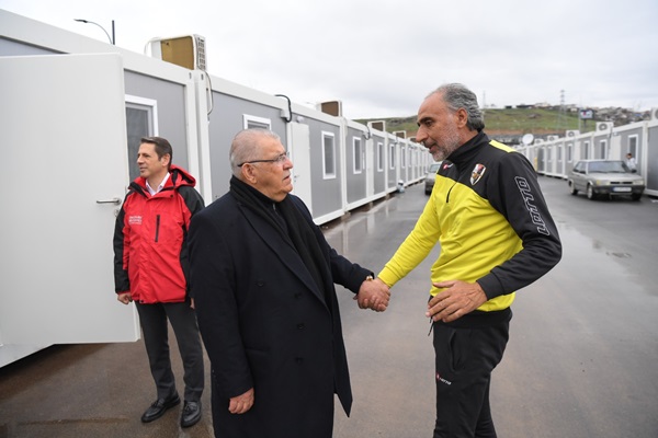 Başkan Mahçiçek son olarak, depremzedeler için Türkiye Cumhuriyeti Cumhurbaşkanlığı Savunma Sanayii Başkanlığı tarafından EXPO 2023 Sergi Alanı’na oluşturulan konteyner kentte incelemelerde bulundu.