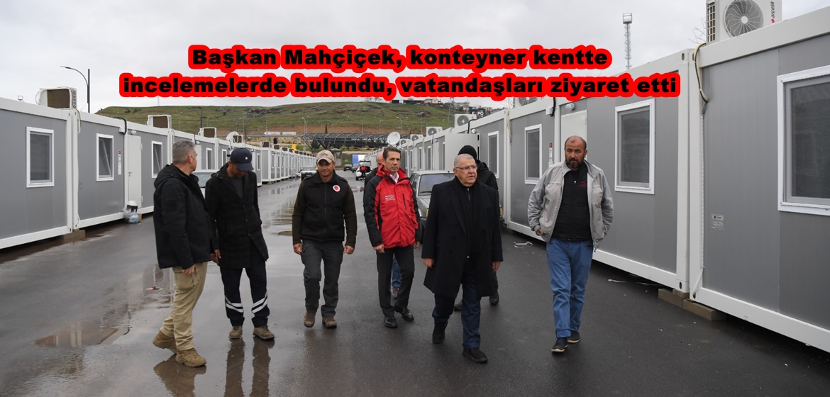 Başkan Mahçiçek’e konteyner kenti ziyaretinde, Belediye Başkan Yardımcısı Dr. Ali Ünsal ve Meclis Başkanvekili Eray Şenay da eşlik etti.