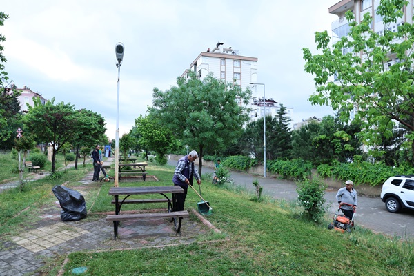 Park ve yeşil alanlarda detaylı temizlik çalışması yapan ekipler, bir taraftan da ağaç dikimi, budama, çim serim ve yabani ot biçme işlemlerini de hassasiyetle gerçekleştiriyor.