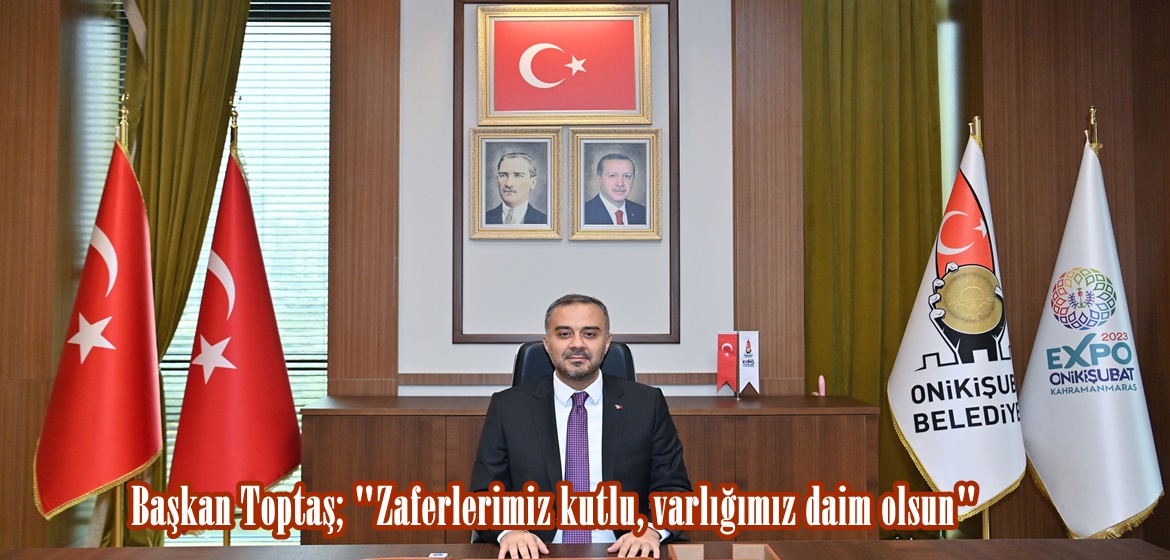 30 Ağustos Zafer Bayramı ve Türk Silahlı Kuvvetler Günü dolayısıyla mesaj yayımlayan Onikişubat Belediye Başkanı Hanifi Toptaş, “Ecdadımızın 30 Ağustos 1922’de kazandığı bu büyük zafer, asil milletimizin canından aziz bildiği kutsal vatanını her ne pahasına olursa olsun koruyacağının ve Anadolu’nun ebediyen Türk yurdu olarak kalacağının tüm dünyaya ilanıdır. Ağustos, biz Türk’lerin zafer ayıdır, zaferlerimiz kutlu ve daim olsun. Tüm şehitlerimizi rahmet ve minnetle yad ediyorum” dedi.