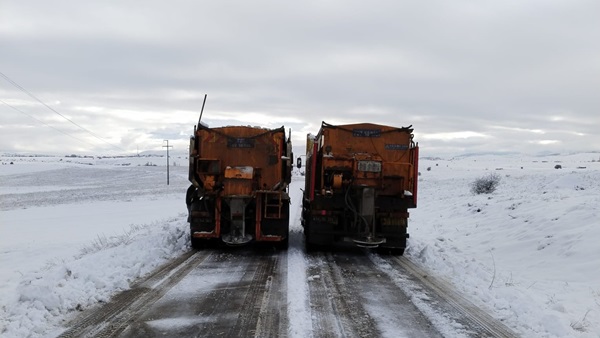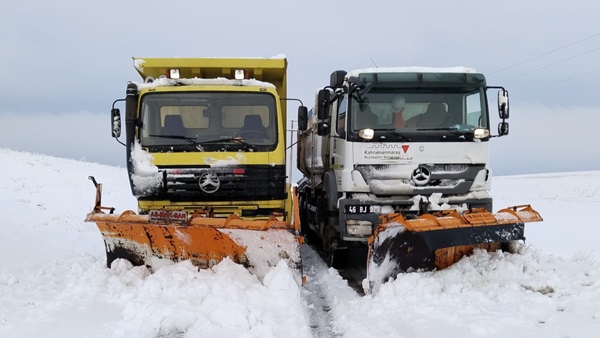Kahramanmaraş Büyükşehir Belediyesi, şehir merkezinin yüksek kesimlerinin yanı sıra ilçelerde ve kırsal mahallelerde yeninden etkili olan kar yağışı sonrası olumsuz hava şartlarının günlük yaşamı ve ulaşımı sekteye uğratmaması için sahada aralıksız çalışmalar yürütüyor. Vatandaşların güvenli ve konforlu bir şekilde seyahat edebilmesi amacıyla ekipler, şehir merkezinden ilçelere ve kırsal mahallelere kadar geniş bir bölgede yoğun mesai harcıyor. Yol Yapım, Bakım ve Onarım Dairesi Başkanlığı ile Kuzey İlçeler Daire Başkanlığı koordinesinde yürütülen çalışmalar kapsamında; Göksun, Afşin, Çağlayancerit ve Elbistan başta olmak üzere ilçe merkezleri ve kırsal mahallelerde etkili olan kar yağışı sonrası kar küreme ve tuzlama çalışmalarını aralıksız sürdürüyor. Trafik yoğunluğunun fazla olduğu güzergâhlar öncelikli olarak temizlenerek ulaşıma açık tutulurken, kırsal mahallelerde ise vatandaşların ulaşım sağladığı grup yollarında çalışmalar yoğun bir şekilde sürüyor.