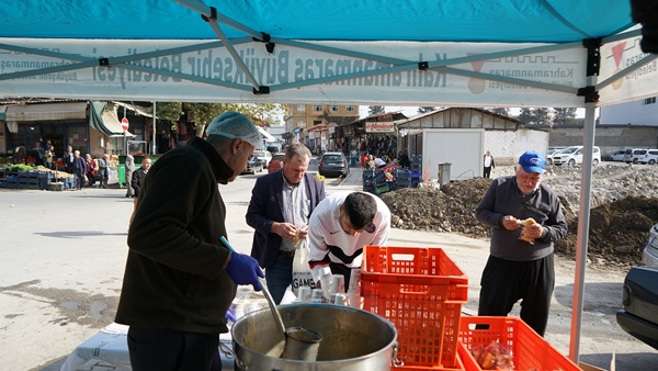 Başkan Fırat Görgel öncülüğünde hayata geçirdiği sosyal desteklerle vatandaşların takdirini kazanan ve gönül köprüleri inşa eden Kahramanmaraş Büyükşehir Belediyesi, anlamlı bir çalışmayı daha hayata geçirdi. Derepazarı’nda esnaf ve vatandaşlara sıcak çorba ikramında bulunuldu. Büyükşehir’in çorba ikramı, insanların içi kadar gönülleri de ısıttı. Büyükşehir Belediyesinin sıcak çorba ikramı, hem iç ısıtan hem de manevi destek sağlayan bir yardım olarak öne çıkıyor. Vatandaşlar, böylesi bir hizmetin kendileri için çok anlamlı olduğunu vurgulayarak Büyükşehir Belediyesine teşekkür etti.