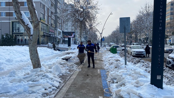 Kahramanmaraş Büyükşehir Belediyesi, şehirde etkisini sürdüren yoğun kış şartlarına karşı vatandaşların günlük yaşamlarının sekteye uğramaması ve ulaşımın güvenli şekilde devam etmesi için çalışmalarını hız kesmeden sürdürüyor. Sahada kesintisiz görev yapan ekipler hem araç trafiğinin hem de yayaların güvenliğini sağlamak amacıyla gece gündüz demeden mesai yapıyor. Ana arterler ve bağlantı yollarında kar küreme ve tuzlama çalışması yapan ekipler, yaya yollarında da çalışmalarını kesintisiz sürdürüyor. Çevre Koruma ve Sıfır Atık Dairesi Başkanlığı koordinesinde gerçekleştirilen çalışmalar kapsamında kaldırım, yaya yolları, üst geçitler, park alanları ve hastane önlerinde oluşan buzlanmaların giderilmesi amacıyla yayalar için risk oluşturan buz kütleleri temizleniyor. Buzlanmanın yeniden oluşmasını önlemek amacıyla tuzlama çalışmaları da yapılıyor.