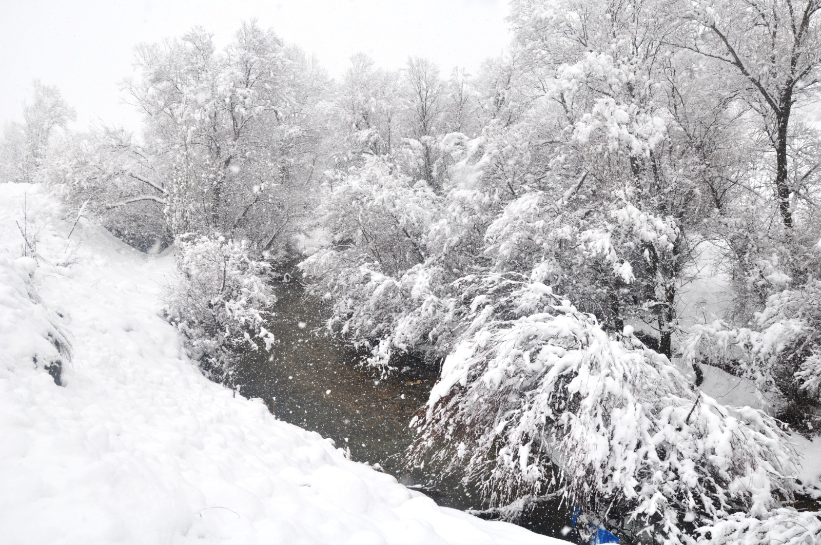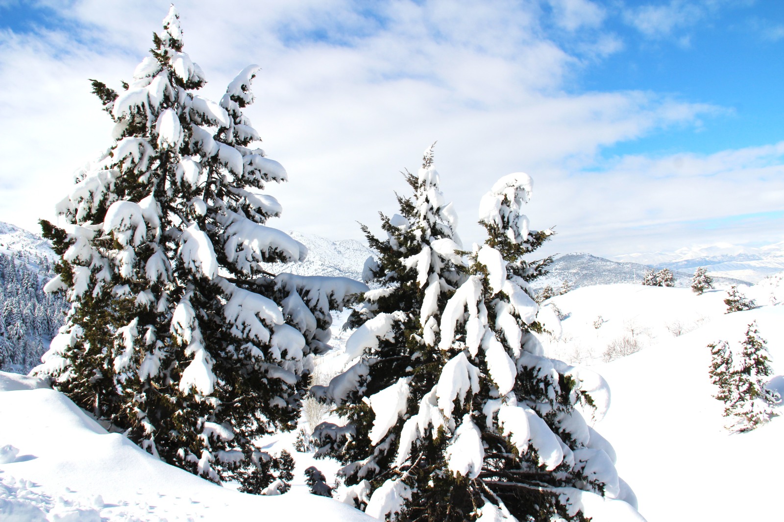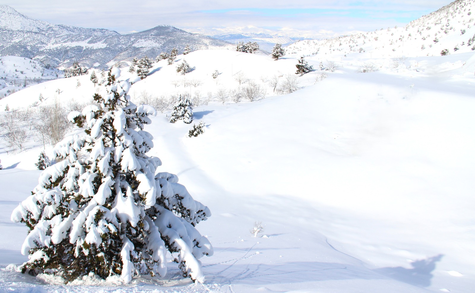 Kar altında kalan Ardıç ağaçları ve doğa muhteşem manzara sunuyor.