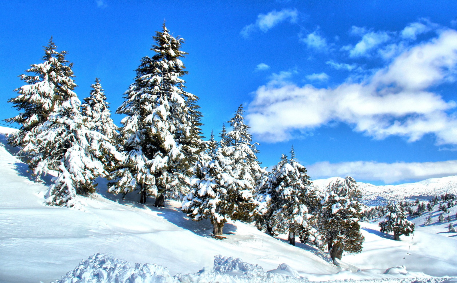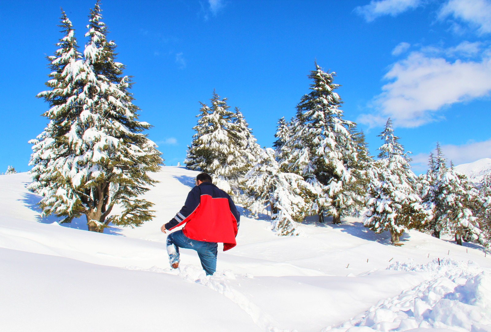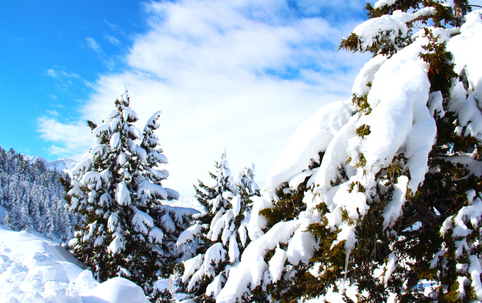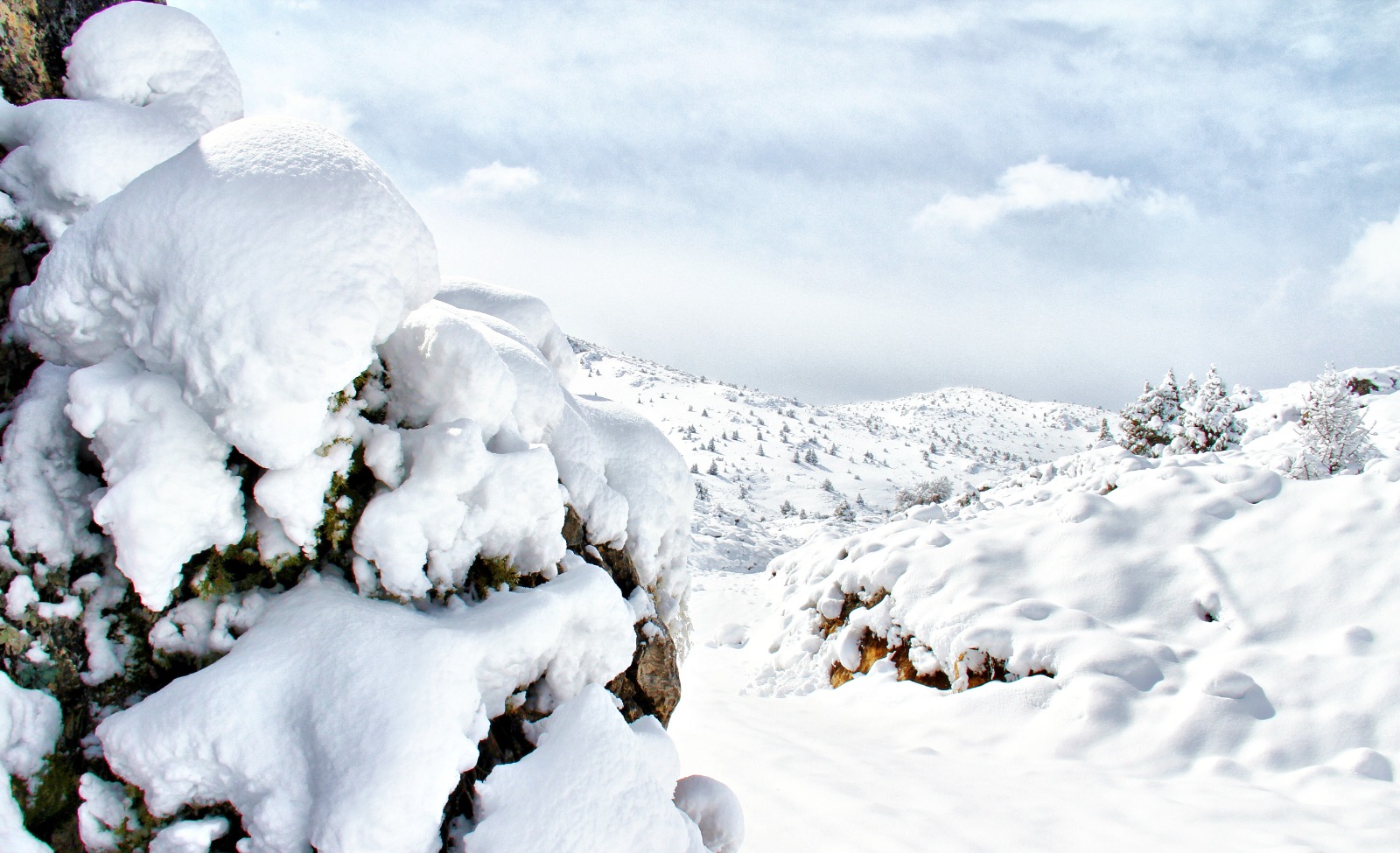 Kar altında kalan Ardıç ağaçları ve doğa muhteşem manzara sunuyor.