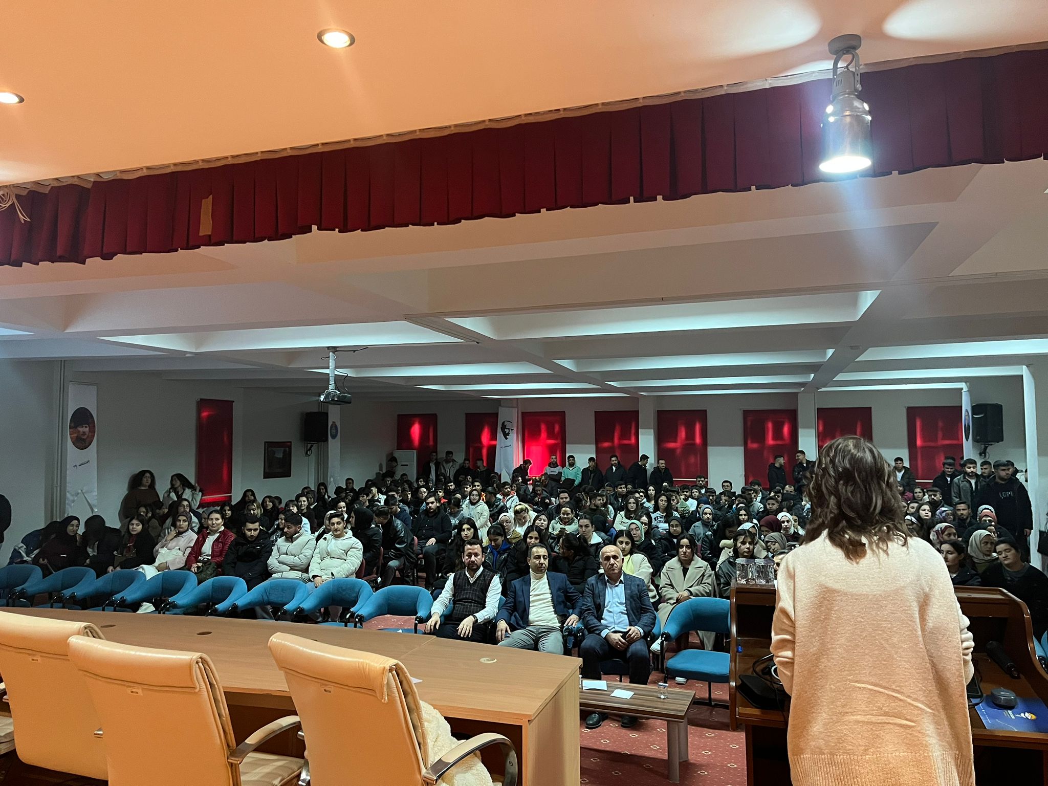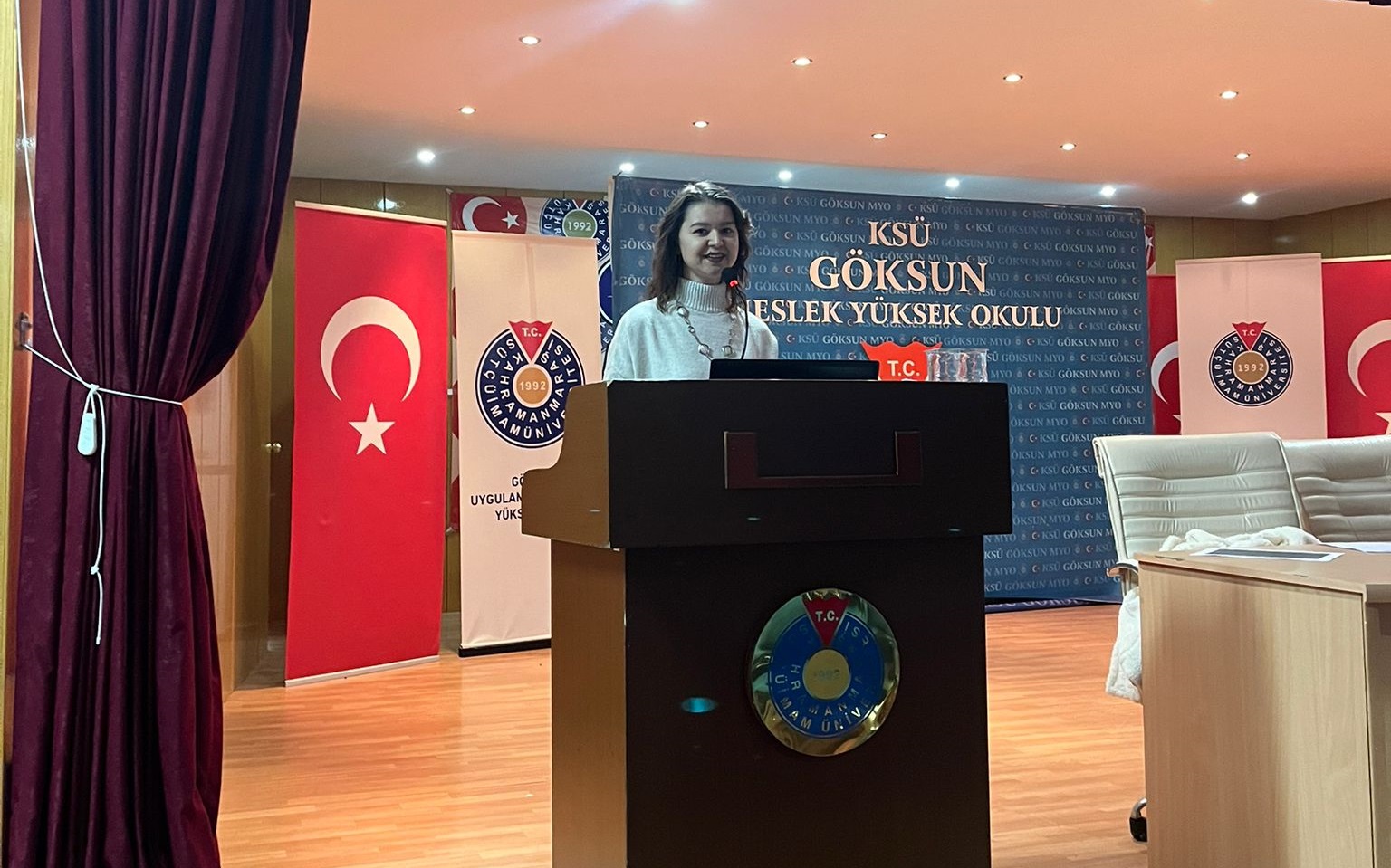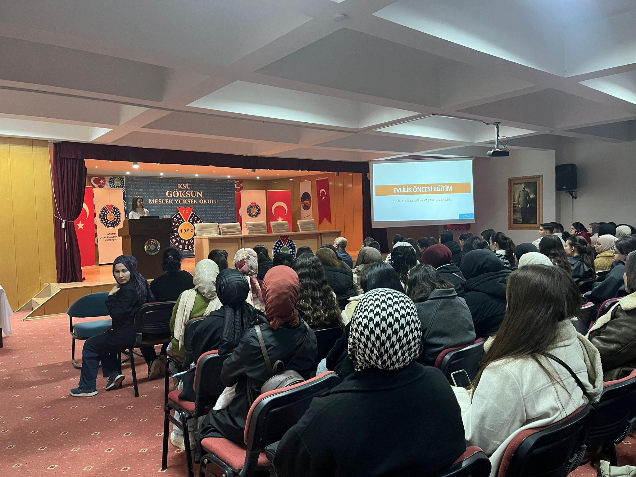 Kahramanmaraş Sütçü İmam Üniversitesi (KSÜ) Göksun Meslek Yüksek okulu Arslanbey konferans salonunda Aile ve Sosyal Hizmetler Bakanlığı Kahramanmaraş İl Müdürlüğü personeli psikolojik danışman Merve Arslan NURDOĞAN tarafından Evlilik Öncesi Eğitim Semineri düzenlendi.