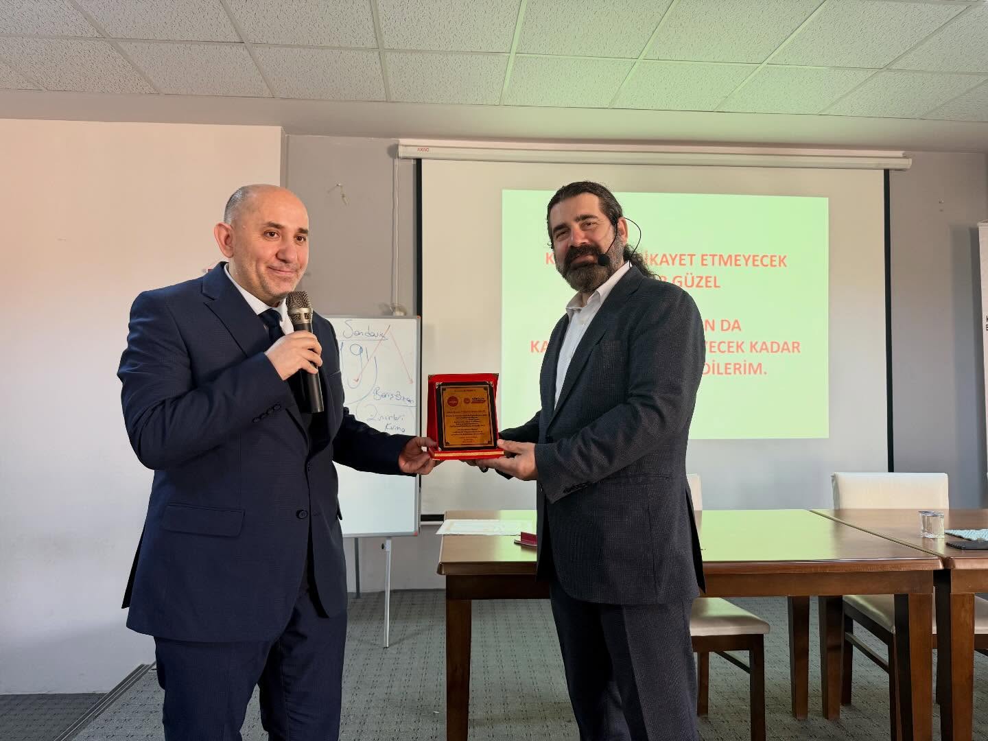 Seminer sonunda Göksun İlçe Müftüsü Akif Arıkmert tarafından, değerli sunumları ve katkılarından dolayı Uzman Psikolog Sayın Özkan Şenol’a plaket takdim edildi.
