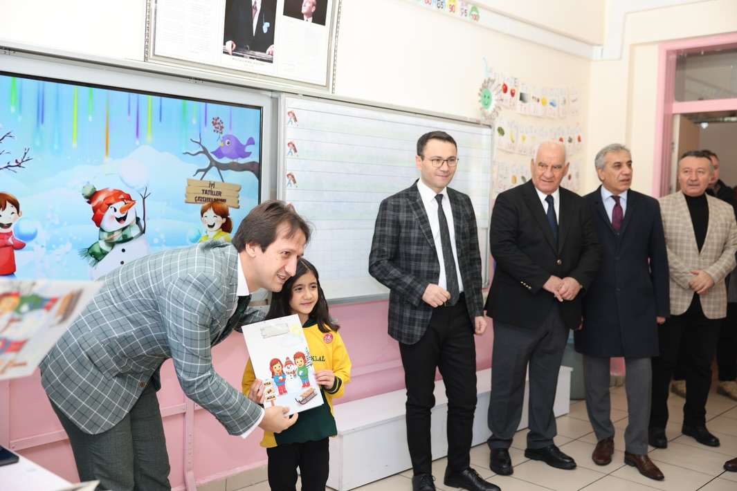 İlçemizde yarıyıl tatiline giren öğrencilerimizin karneleri; İlçe Kaymakamı Mustafa Emre Kılıç, Belediye Başkanımız Selim Cüce, İlçe Millî Eğitim Müdürü Dr. Şeref Yiğit Akpınar, Millî Eğitim Şube Müdürleri, okul idarecileri ve öğretmenlerin katılımıyla düzenlenen törenle dağıtıldı.