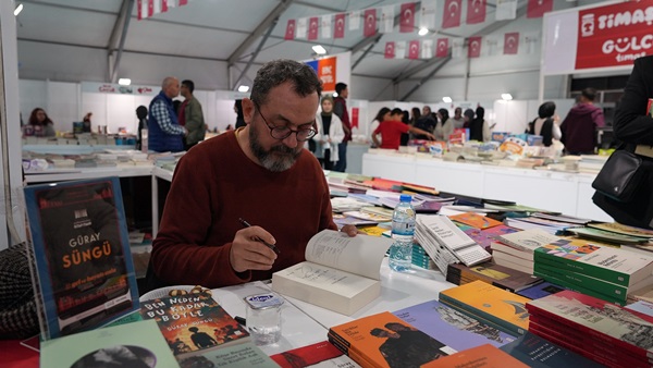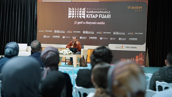 Kahramanmaraş Büyükşehir Belediyesinin düzenlediği 10. Uluslararası Kahramanmaraş Kitap Fuarı, edebiyatseverlerin buluşma noktası olmaya devam ediyor. KAFUM’da düzenlenen ve şehrin kültürel dinamizmine önemli katkılar sunan fuarda edebiyat tutkunlarını bir araya getirerek kentin kültürel hayatına renk katmaya devam ediyor. Fuar kapsamında düzenlenen söyleşide edebiyat tutkunları ile bir araya gelen öykü ve roman yazarı Güray Sürgü, yazarlık yolculuğuna ilişkin önemli anekdotlar paylaştı. Kendi kitaplarından bölümlerle yazma yolculuğunu anlatan Sürgü, edebiyatseverlerle ilham dolu bir sohbet gerçekleştirirken, Kahramanmaraş’ın edebiyata adım atmasında önemli bir yeri olduğunu vurguladı. Söyleşinin ardından Sürgü, fuar alanında kitaplarını vatandaşlar için imzaladı.