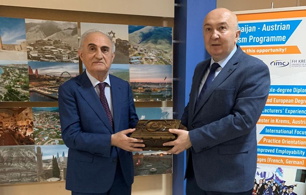Rektör Yasım başkanlığında, Rektör Yardımcıları Prof. Dr. Nuri Kahveci ve Prof. Dr. Orhan Doğan ile Genel Sekreter Ali Rıza Bekler’den oluşan KSÜ heyetini ağırlayan Azerbaycan Turizm ve Menecment Üniversitesi Rektörü İlham Madatov, ATMU ile ilgili KSÜ heyetini bilglendirerek ziyaretten duyduğu memnuniyeti dile getirdi.