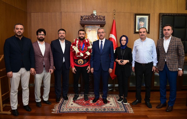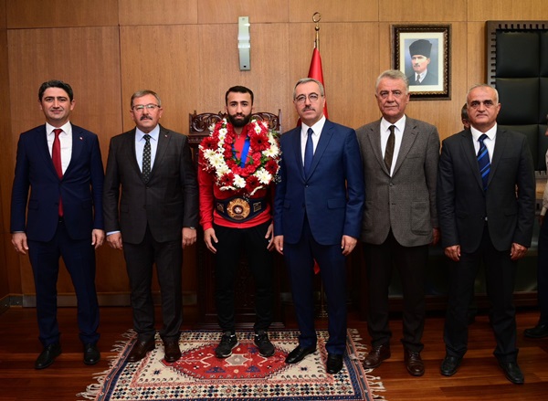 Dünya şampiyonu olan Kahramanmaraşlı milli güreşçi Burhan Akbudak’ı makamında ağırlayan Başkan Güngör, “Bu topraklarda çok büyük güreşçilerimiz yetişti ve büyük başarılara imza attılar. Bu başarı zincirini Burhan kardeşimiz de devam ettiriyor. 23 yıl aranın ardından bizlere bu mutluluğu tekrar yaşattı. Şehrimizi, ülkemizi ve bizleri çok gururlandırdı. Başarılarının devamını diliyorum” dedi.