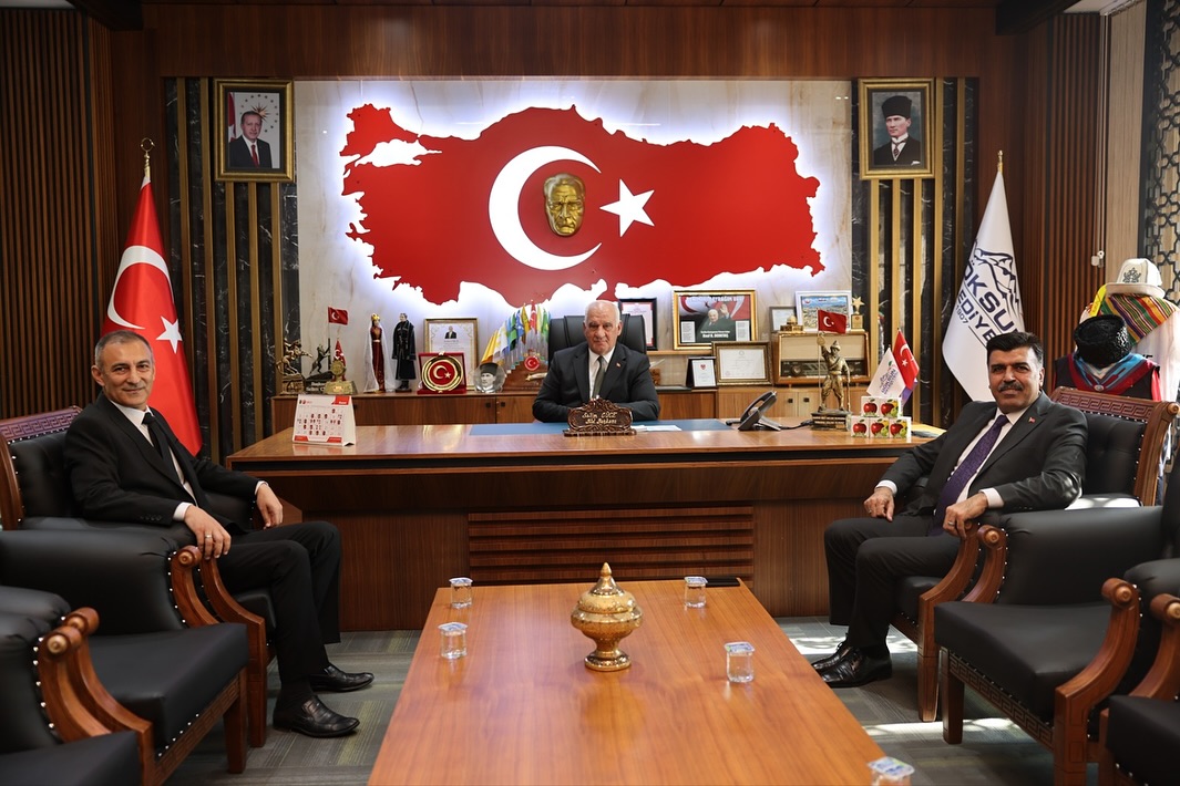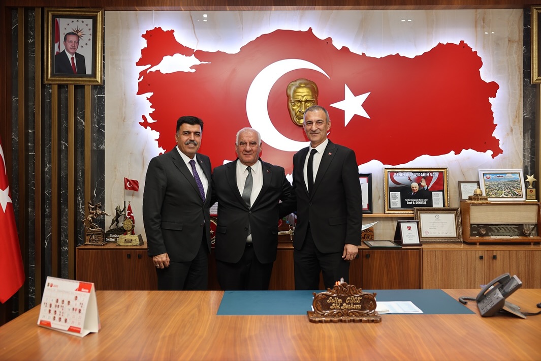 Dulkadiroğlu İlçe Millî Eğitim Müdürü Hüseyin Mart ve Onikişubat İlçe Millî Eğitim Müdürü Harun Kurt, Göksun Belediye Başkanı Selim Cüce’yi makamında ziyaret ettiler.