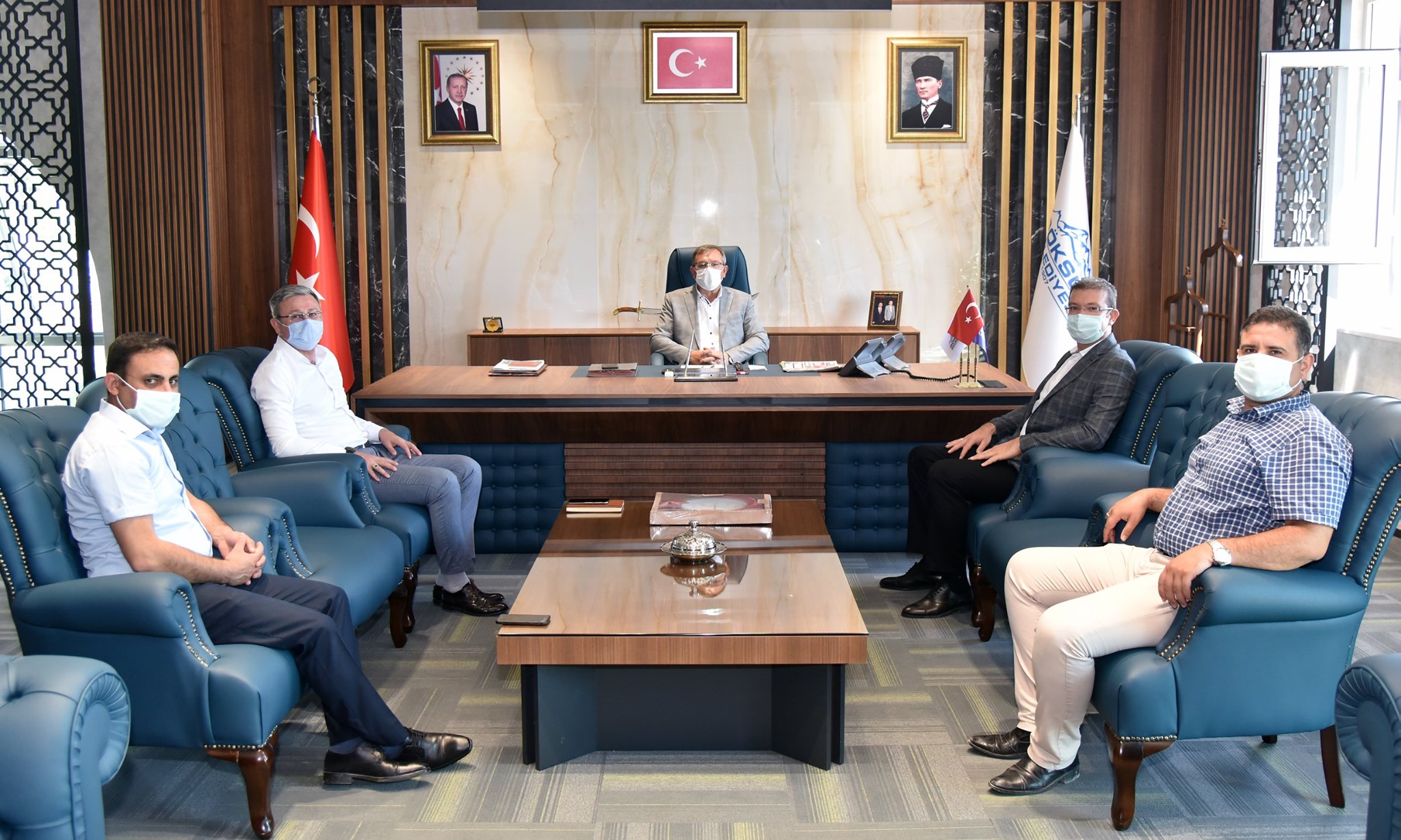 Başkan Aydın’la bir süre sohbet eden Başmüdürü Oğuzhanoğlu ve misafirler, Yeni Hizmet Binamızın hayırlı hizmetlere vesile olması temennisinde bulundu.