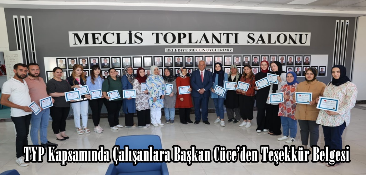 Belediye Başkanı Selim Cüce, Gazetece Mehmet Fiskeci ile birlikte iş günü tamamlanan çalışanlara teşekkür belgesi vererek,gösterdikleri emeklerden dolayı minnettarlığını bildirdi ve şunları söyledi: