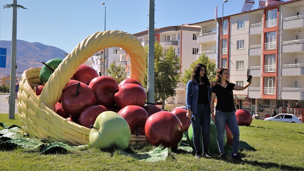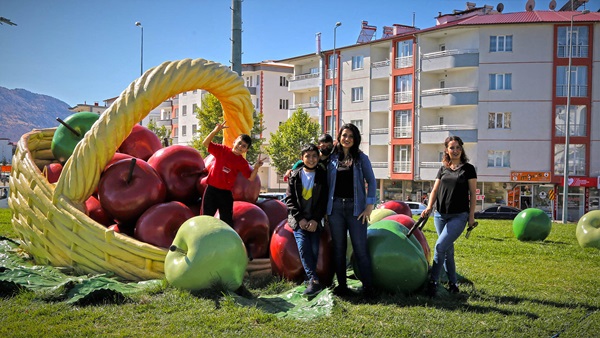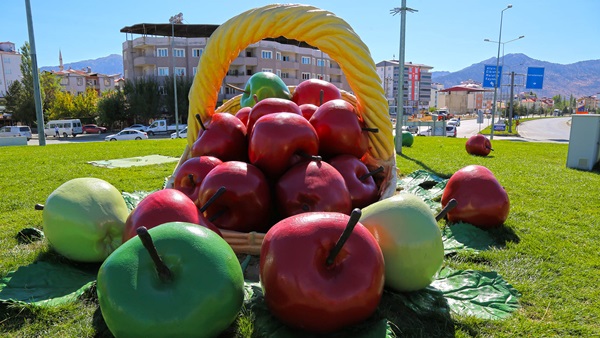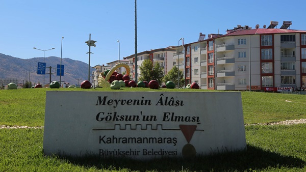 Büyükşehir Belediyesi’nin atölyelerinde usta eller tarafından imal edilen eserler, bu defa Göksun ilçesini süsledi. Otogar kavşağında bulunan ve ilçeyle özdeşleşmiş elma figürleri yenilenerek kavşaktaki yerlerini aldı.